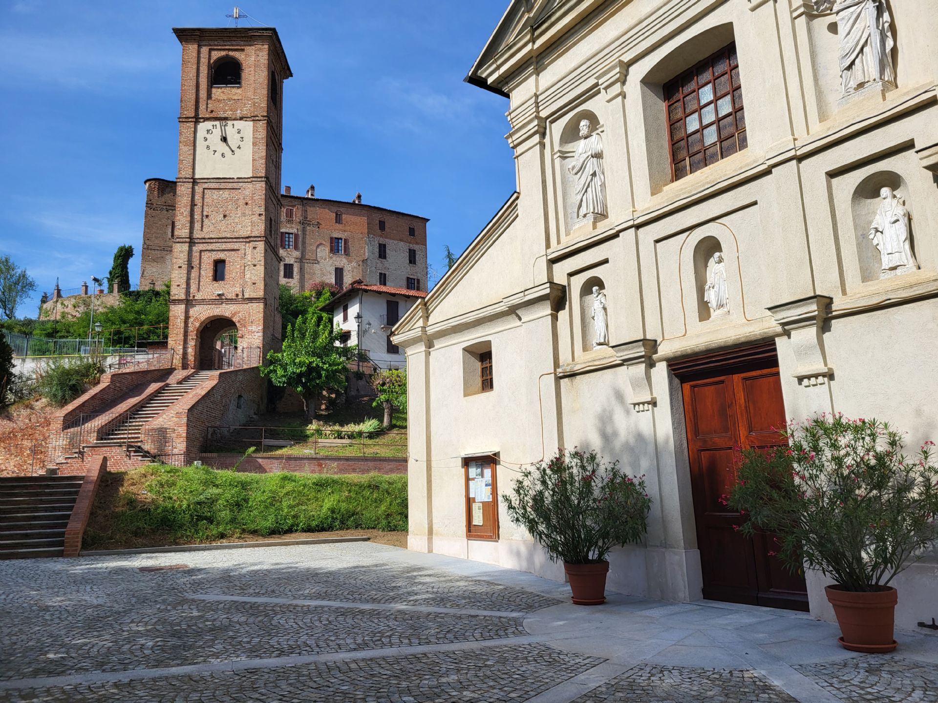 È stato necessario interrompere il percorso della scala che, dalla torre, scendeva al piazzale della chiesa parrocchiale presso la quale, un tempo, si trovava anche il cimitero.