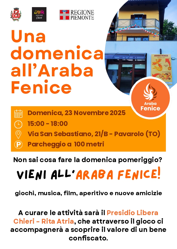 A curare le attività sarà il Presidio Libera Chieri – Rita Atria, che attraverso il gioco ci accompagnerà a scoprire il valore di un bene confiscato.